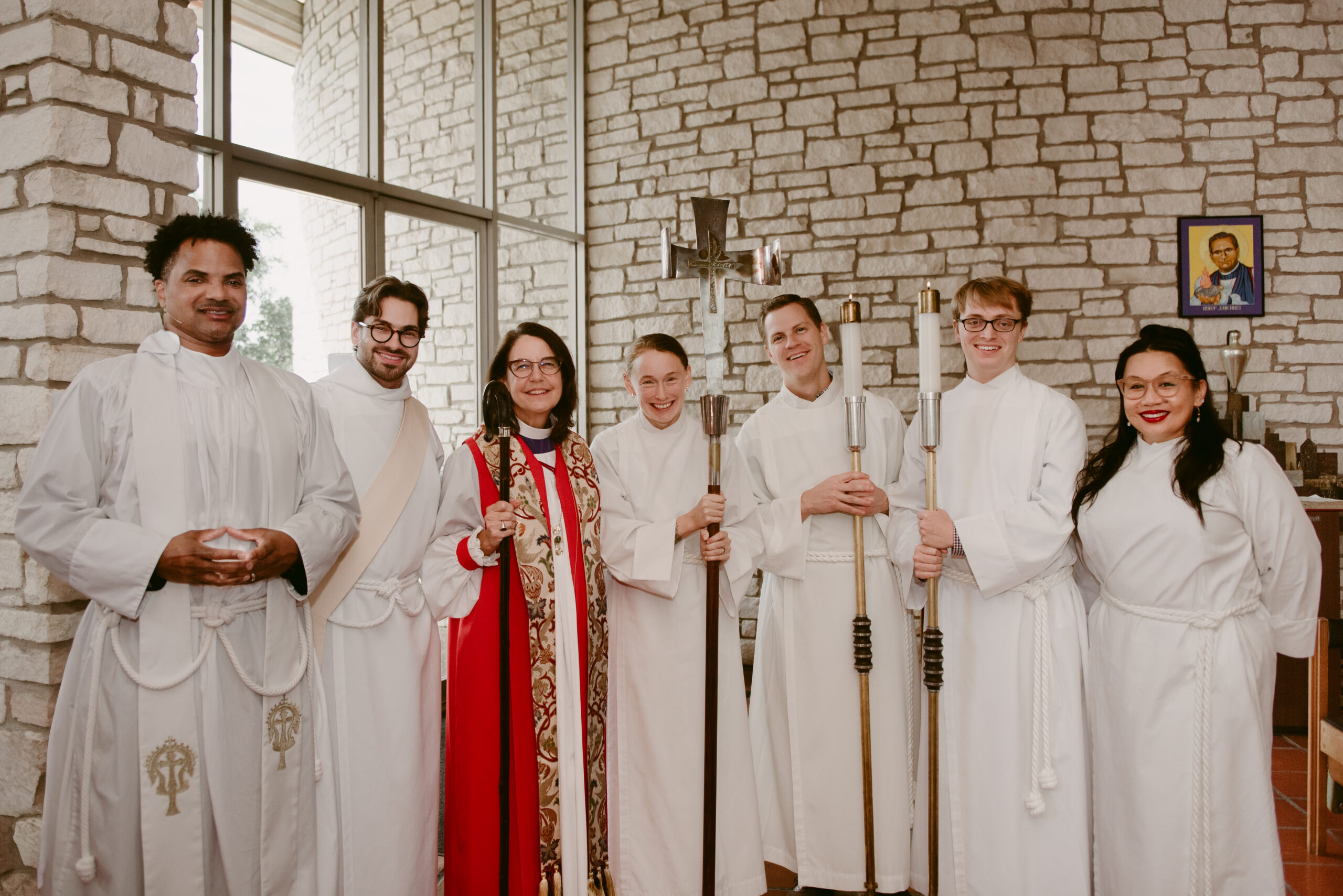 This year’s preacher, the Rev. Jemonde Taylor, rector of St. Ambrose Episcopal Church in Raleigh, North Carolina, and a member of the Southwest Board of Trustees, offered a sermon that drew on Hines’s courage and conviction, reminding listeners that faithfulness often means risking comfort for the sake of truth. The Rt. Rev. Kathryn M. Ryan, Bishop Suffragan of the Diocese of Texas, presided at the service. Among those in attendance were members of the Board of Trustees, several members of the John Hines Legacy Society, and Kenneth Kesselus, author of John E. Hines: Granite on Fire, the definitive biography of the seminary’s founder.